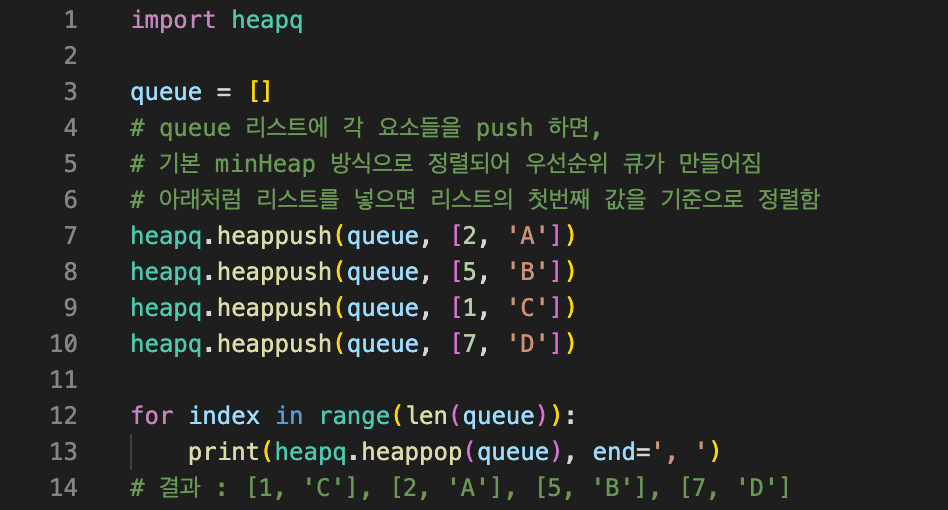 < heapq 라이브러리를 활용해 우선순위 큐 사용하는 방법 >