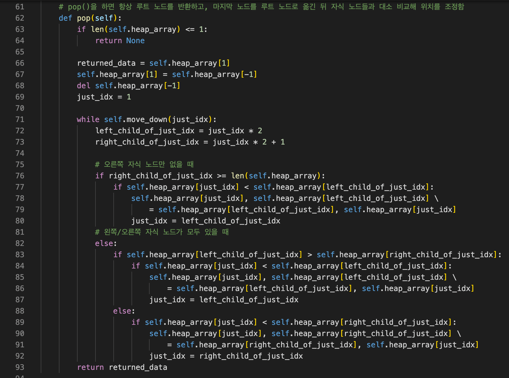 - 부모 노드 인덱스 번호 = 자식 노드 인덱스 번호 // 2