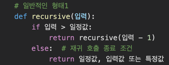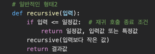 - 함수 안에서 동일한 함수를 호출하는 형태