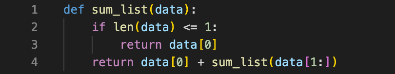 (예제 2) 숫자가 들어있는 리스트의 모든 요소 합을 구하는 함수