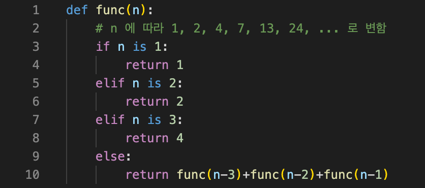 (예제 5) 정수 n을 1, 2, 3의 합으로 나타낼 수 있는 방법의 수를 구하는 함수