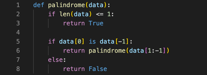 (예제 3) 거꾸로 읽어도 같은 단어(회문, Palindrome)를 판별할 수 있는 함수