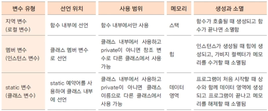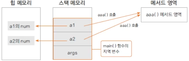 - 지역 변수 중 참조 변수가 참조하는 인스턴스 변수는 힙 영역(동적 메모리 영역)